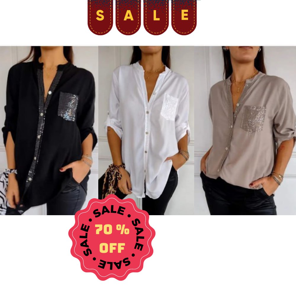 π₯Last Day Sale Up To 70% OFF - Cotton V-neck Sequin Mid-sleeve Casual Top